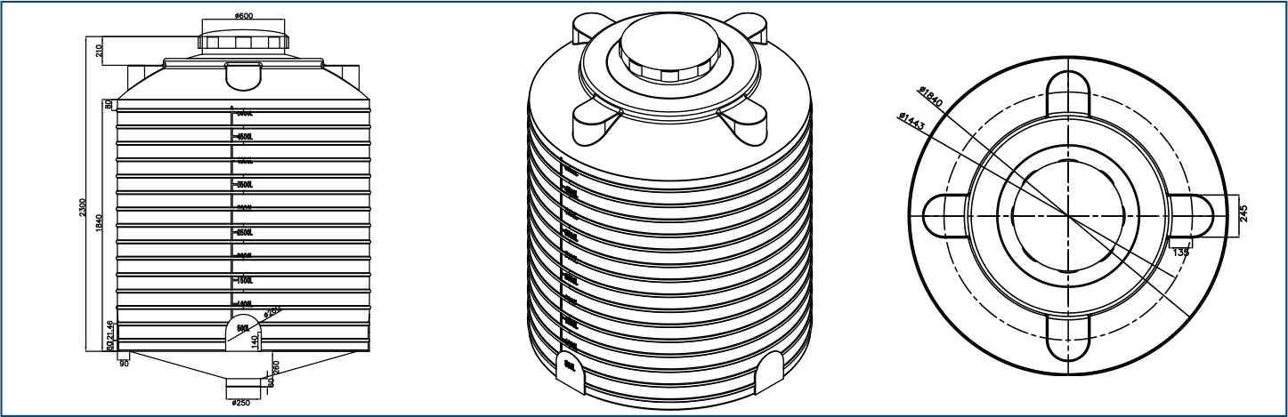 锥底储罐选用韩国进口食品级PE原料(LLDPE),产品一次性滚塑成型,无焊缝,耐磨耐老化。桶体为倾斜锥底和底部正中间锥底,配相应的支撑底架。桶内液体可一次排净,无残留物,方便清洗。产品广泛运用于供水蓄水,水处理、化工、环保、建筑、化工、稀土、染料、食品原料、医药等各行业。