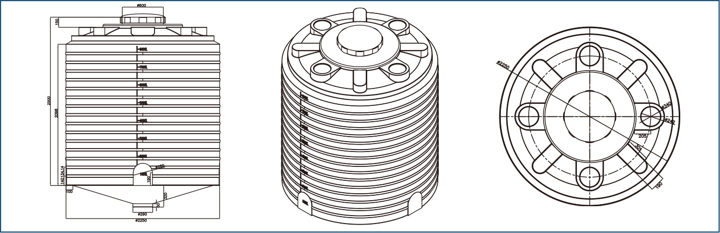 锥底储罐选用韩国进口食品级PE原料(LLDPE),产品一次性滚塑成型,无焊缝,耐磨耐老化。桶体为倾斜锥底和底部正中间锥底,配相应的支撑底架。桶内液体可一次排净,无残留物,方便清洗。产品广泛运用于供水蓄水,水处理、化工、环保、建筑、化工、稀土、染料、食品原料、医药等各行业。