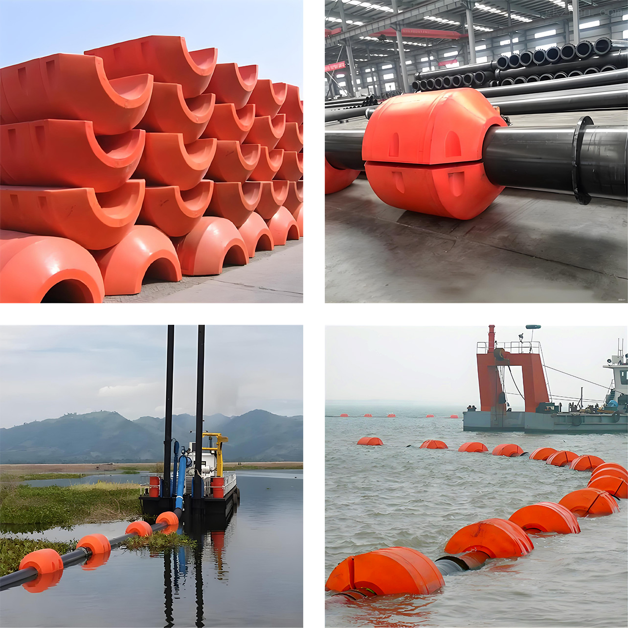 管道类浮体由两个半片用螺栓拼装而成,现场仅需要简单的工具即可操作,当某个浮体出现问题时,只需要对问题浮体拆换即可。